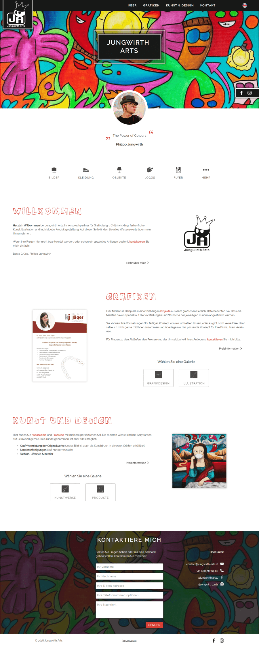 Der Maler und Grafikdesigner Philipp Jungwirth benötigte eine Seite, die seine oft chaotisch wirkende Kunst widerspiegelt, jedoch gleichzeitig strukturiert und modern ist.